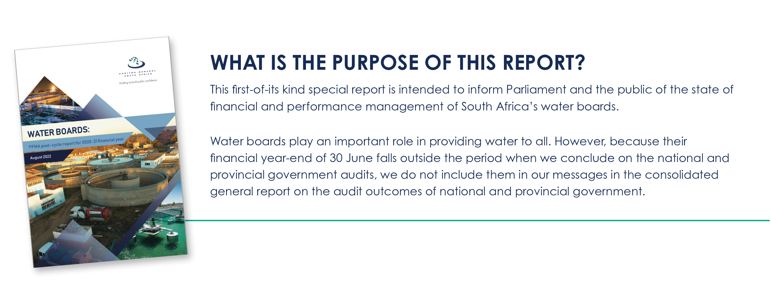 PRETORIA – Auditor-General Tsakani Maluleke today released the report on the audit outcomes of South Africa’s nine water boards, calling for improved financial and performance management controls that enable reliable water service delivery to communities
